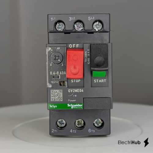 You can download the Schneider GV2ME04 datasheet from the Electrihub product page, containing technical specifications, wiring diagrams, and operational guidelines.